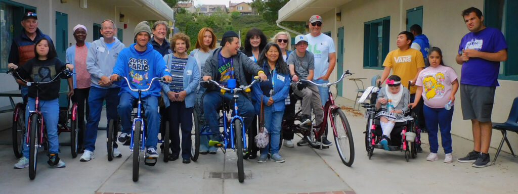 Kiwanis Club of Santa Clarita members with special needs students at Valencia High School on the adult tricycles that our Kiwanis Club donated.